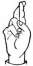 На ћирилици написано ХРАНИМИР ВАСИЉЕВ састоји се из 15 слова [?]. Исписано ћириличном једноручном азбуком за глувонеме: